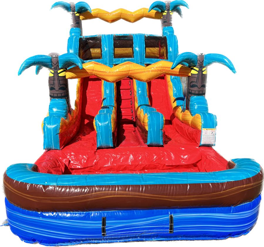 Don't miss out on the chance to make your summer event unforgettable. Book our 16ft Tropic Shock Double Lane Waterslide today and let the tropical fun begin! Contact us now to reserve your date and get ready for a splashing good time!