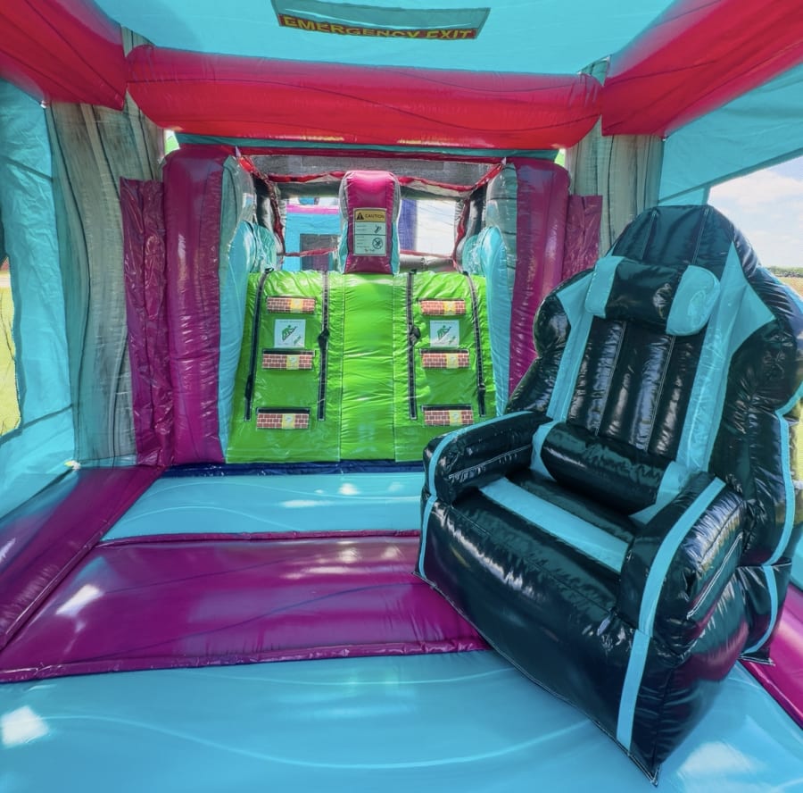 The Glitch Gamer Double Lane Wet/Dry Combo isn’t just another inflatable – it’s a game-changer! Step inside a world where fun and gaming collide. This innovative unit features a real gamer chair and a TV screen inside the spacious bounce house area, offering a true-to-life gaming experience like never before. Kids and adults alike will love jumping, sliding, and competing in a safe, interactive environment.