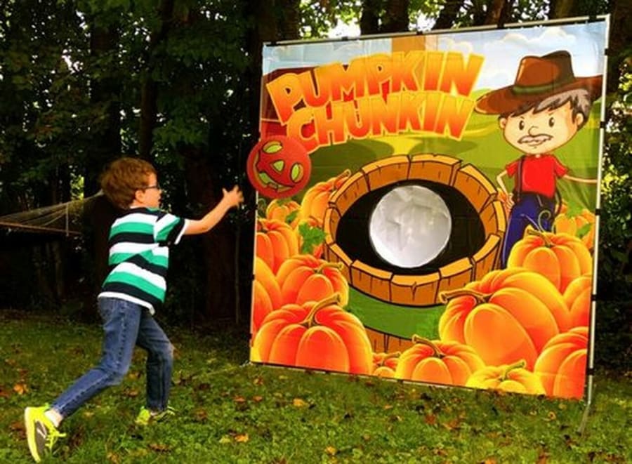 Pumpkin Chunkin is the perfect addition to your fall event. Attendees will attempt to throw or kick the pumpkin kickball in to wooden bucket backdrop. Participants and onlookers alike will enjoy this festive challenge!