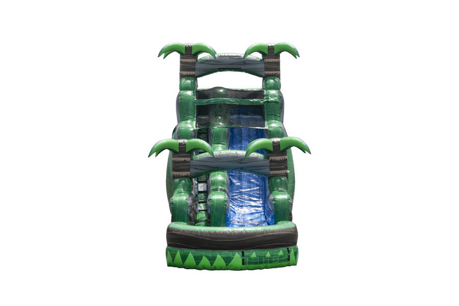 18 Ft Congo Rainforest Water Slide. It’s a perfect option for any event where folks want to cool off and have some adrenaline-pumping fun. Perfect for all ages, and a great in between size for kids who aren’t ready for the giant water slides.