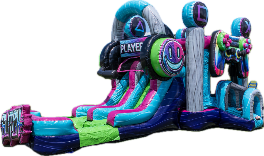 Are you ready to take your party or event to the next level? Introducing the Glitch Gamer Double Lane Wet/Dry Combo– the ultimate inflatable experience designed for gamers and party enthusiasts alike! 🎮💦 Whether you’re planning a birthday, community gathering, or family reunion, this game-themed bounce house delivers non-stop excitement and thrills for all ages.