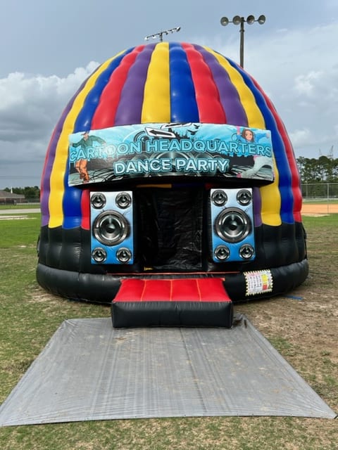 DISCO DANCE DOME! This is perfect for all ages and sure to be the highlight of your next party. the Disco Dance Dome offers blackout curtains to turn the day to night but still allows ample airflow.