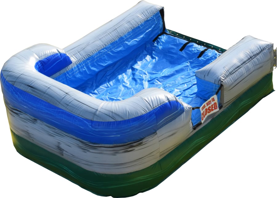 Our Extreme Tropical Wet Obstacle Course can be used WET OR DRY. It is perfect for all ages, toddlers to adults. It has two slide lanes and a splash pad at the bottom of the slide.
