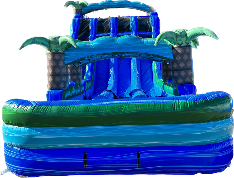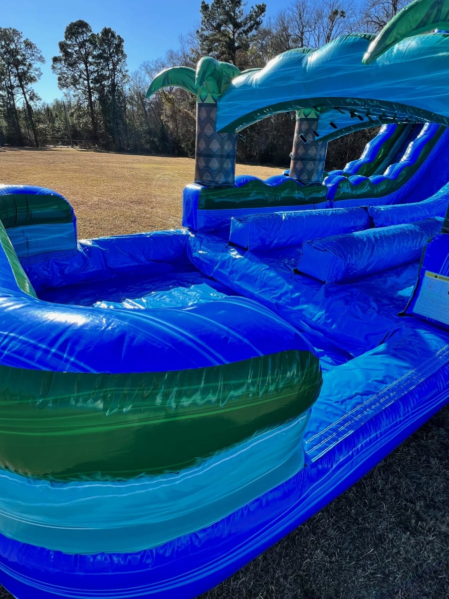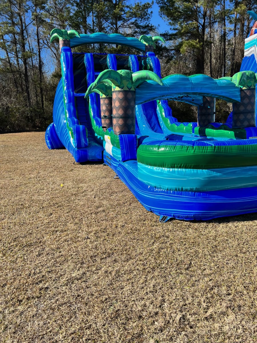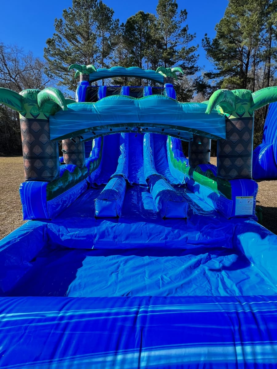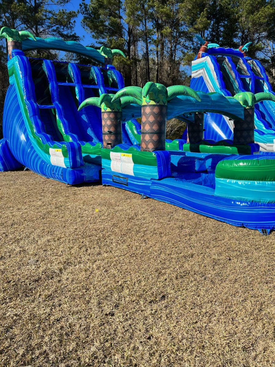 Make a splash with the 20ft Island Drop TRIPLE Lane Waterslide and create unforgettable memories for you and your guests. Available for delivery in Jesup and surrounding areas, this waterslide is the perfect addition to any event. Order yours today and get ready to slide into the ultimate adventure! 🌟