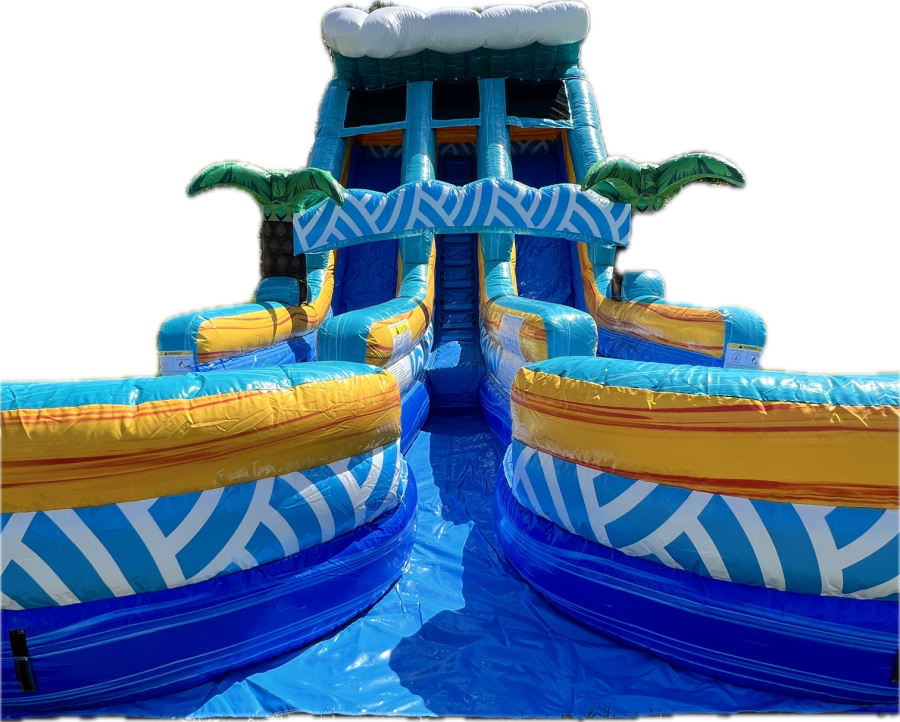 Get ready to make a splash with our 20ft Akua Falls Double Lane Water Slide, the ultimate source of fun and excitement for parties and events! Whether you're planning a backyard bash or a community gathering, this water slide guarantees an unforgettable experience for all ages. With two separate slide lanes and attached pools, it's designed to keep the thrill going while ensuring safety and cleanliness.