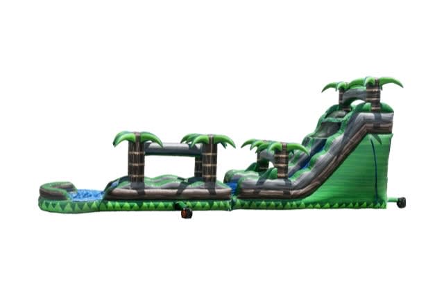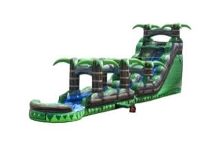 18 Ft Congo Rainforest Water Slide with Slip & Slide. It’s a perfect option for any event where folks want to cool off and have some adrenaline-pumping fun. Perfect for all ages, and a great in between size for kids who aren’t ready for the giant water slides.